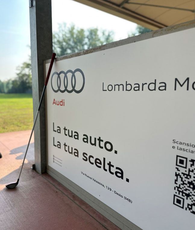 Attraverso la presenza dei nostri pannelli brandizzati Audi, abbiamo voluto instaurare un presidio elegante e discreto in un luogo che incarna appieno la filosofia del marchio: equilibrio, raffinatezza e performance. La collaborazione con il Golf Club Monza non nasce da finalità commerciali, ma dal desiderio di valorizzare il territorio e di rafforzare il legame con una comunità che condivide la stessa attenzione per la qualità e lo stile.